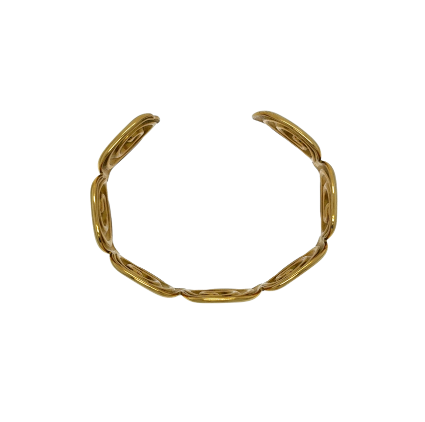 Elevate your elegance with the Marilla bangle – a stunning gold-plated accessory featuring a graceful swirl design that captures movement and light with every turn. Delicately crafted to blend timeless charm with modern flair, Marilla is the perfect finishing touch for both everyday style and special occasions.